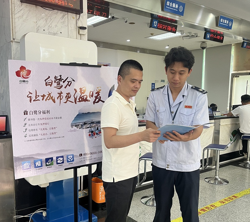 活动现场,办税服务厅通过多重形式营造浓厚宣传氛围。厅内LED屏循环播放“关注白鹭分,守护个人信用”“依法诚信纳税,畅享办税便利”等标语及宣传短片;导税台、窗口旁摆放宣传折页,详细介绍白鹭分的查询路径、评分维度及信用良好可享的政务、生活类便利,同时清晰解读厦门市社会信用条例、纳税信用评价标准、失信惩戒措施与信用修复流程。