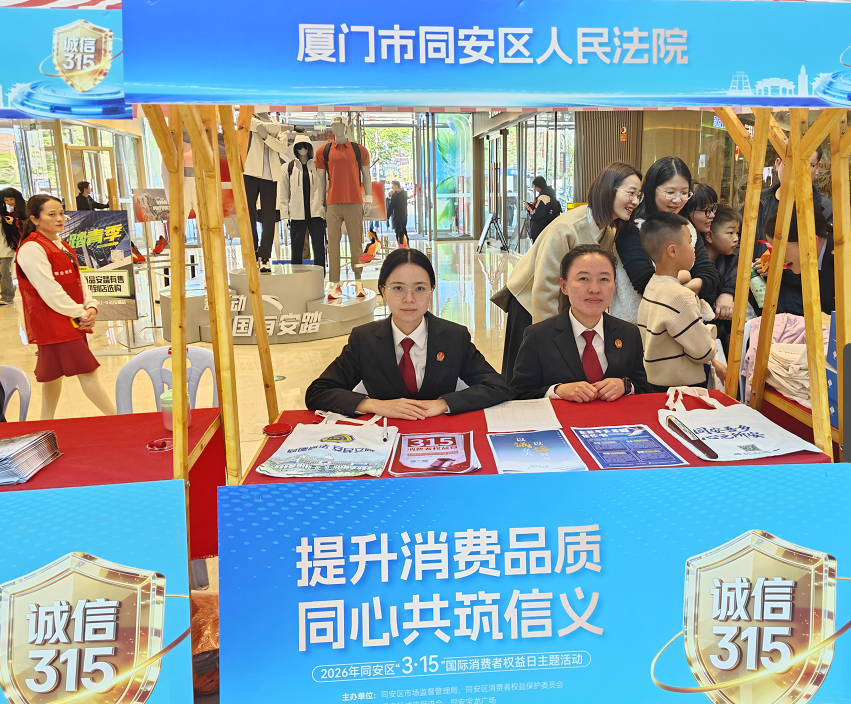在“3·15”国际消费者权益日来临之际,同安法院积极参与“提升消费品质 同心共筑信义”主题宣传活动,于3月14日组织干警前往宝龙广场开展集中宣传。